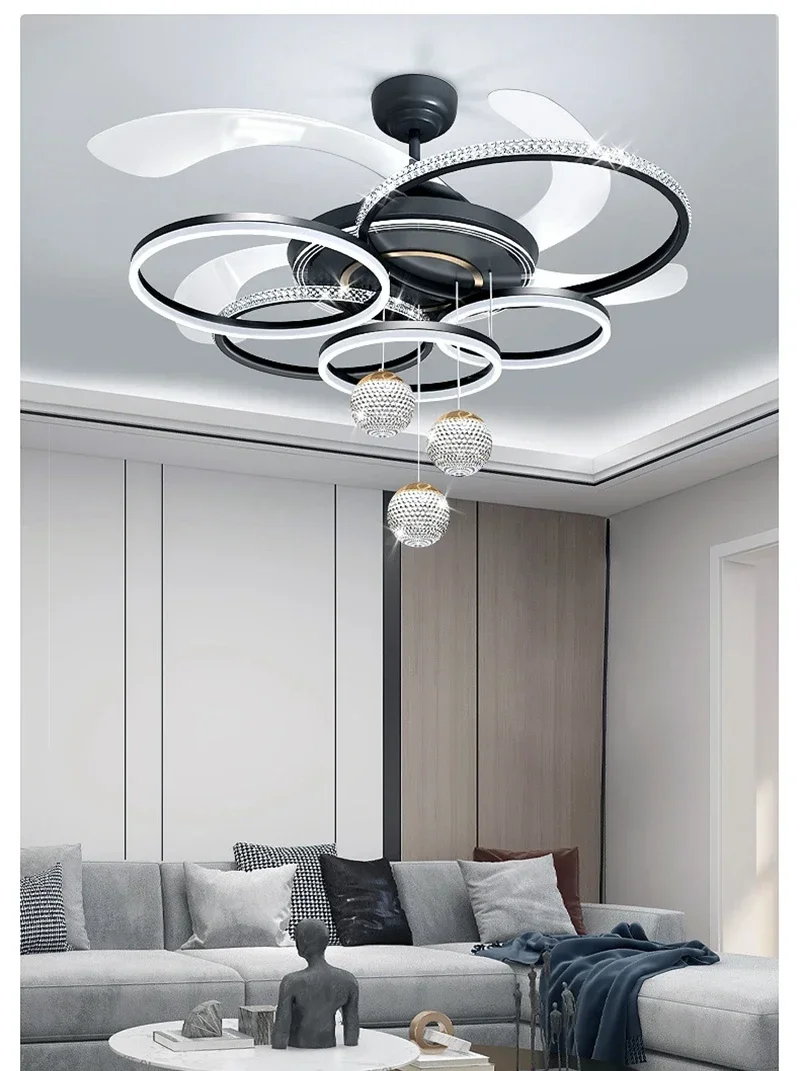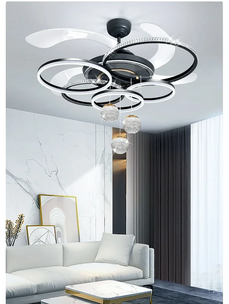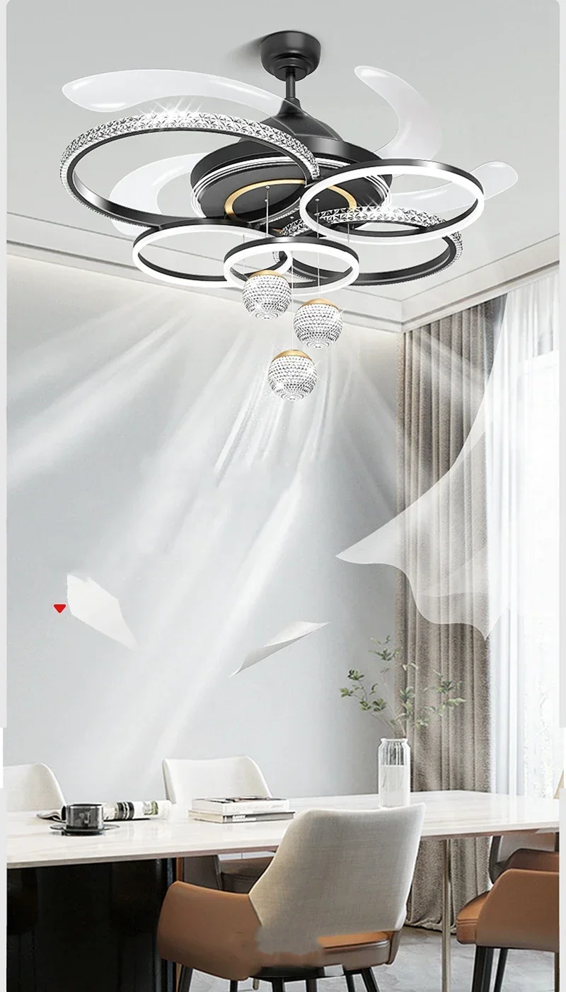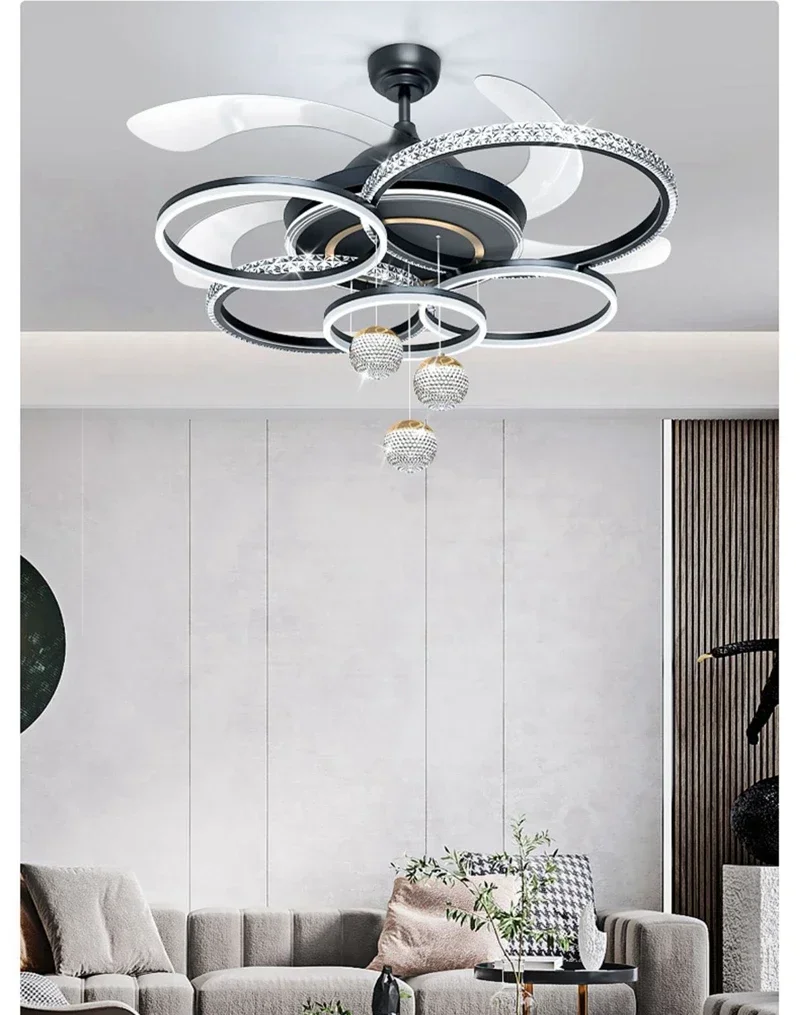 2024 Modern Fan Ceiling Light Living Room Adjustable LED Apartment Ceiling Light Creative Indoor Crystal Ceiling Fan Light
