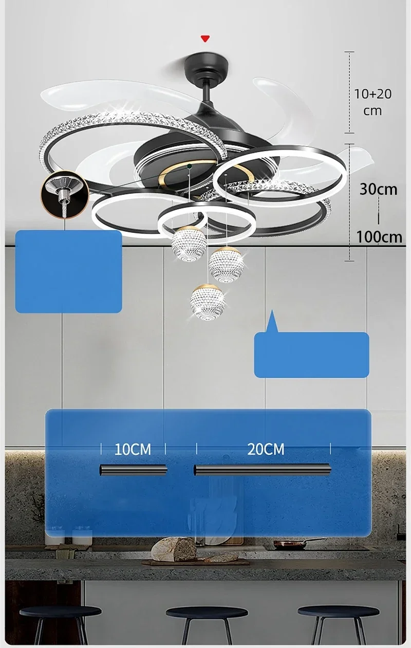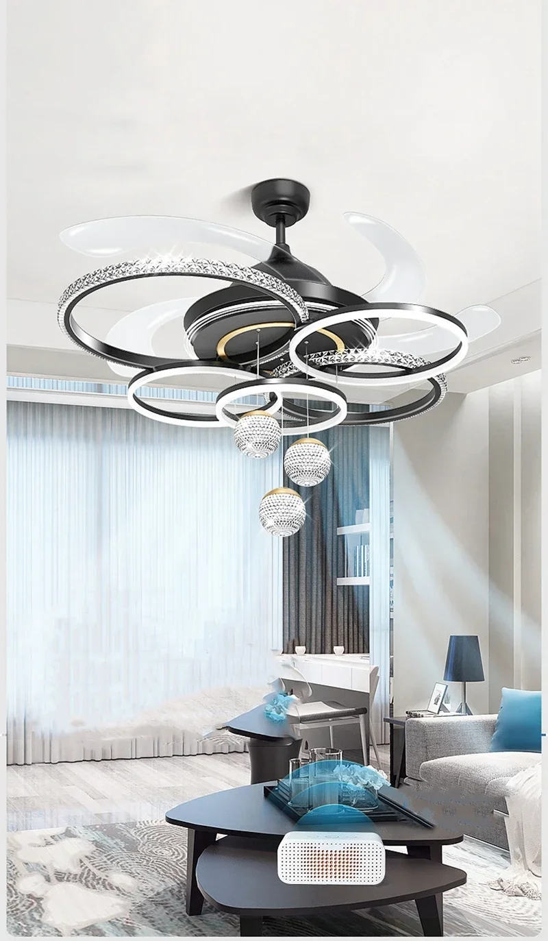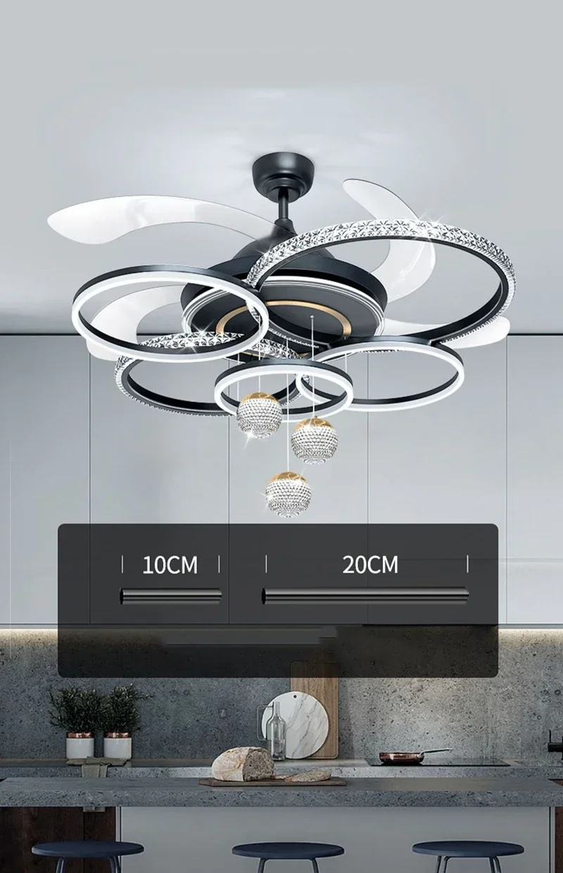 2024 Modern Fan Ceiling Light Living Room Adjustable LED Apartment Ceiling Light Creative Indoor Crystal Ceiling Fan Light