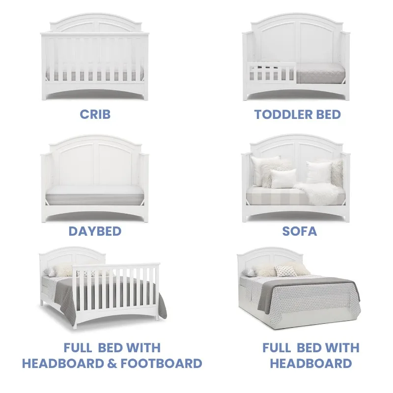 - 6-IN-1 CONVERTIBLE CRIB: Crib converts to a toddler bed, daybed, sofa, full size bed with headboard and footboard and a full size bed with headboard only (Daybed/Sofa Rail included; Toddler Guardrail #0094 and Full Size Rails #0050 sold separately)