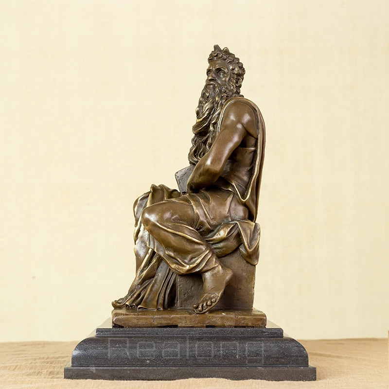 Bronze Moses Statue by Michelangelo Replica Famous Classic Bronze Moses with Ten Commandments Sculpture Figurine Art Home Decor