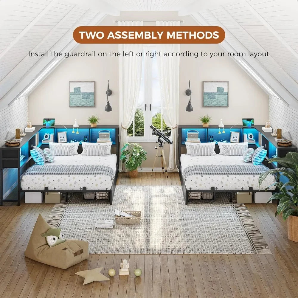 - 【Multifunctional Storage Space】DICTAC full corner bed with 2 large drawers and integrated storage headboard and bookcase side rails to provide more intelligent and practical storage space for small spaces. Large drawers offer perfect storage space for bed sheets, accessories, off-season clothing, etc.Bookcase storage shelf keeps your books, glasses, alarm clock, mobile phone, etc. within easy reach, helping you maintain a good reading habit.