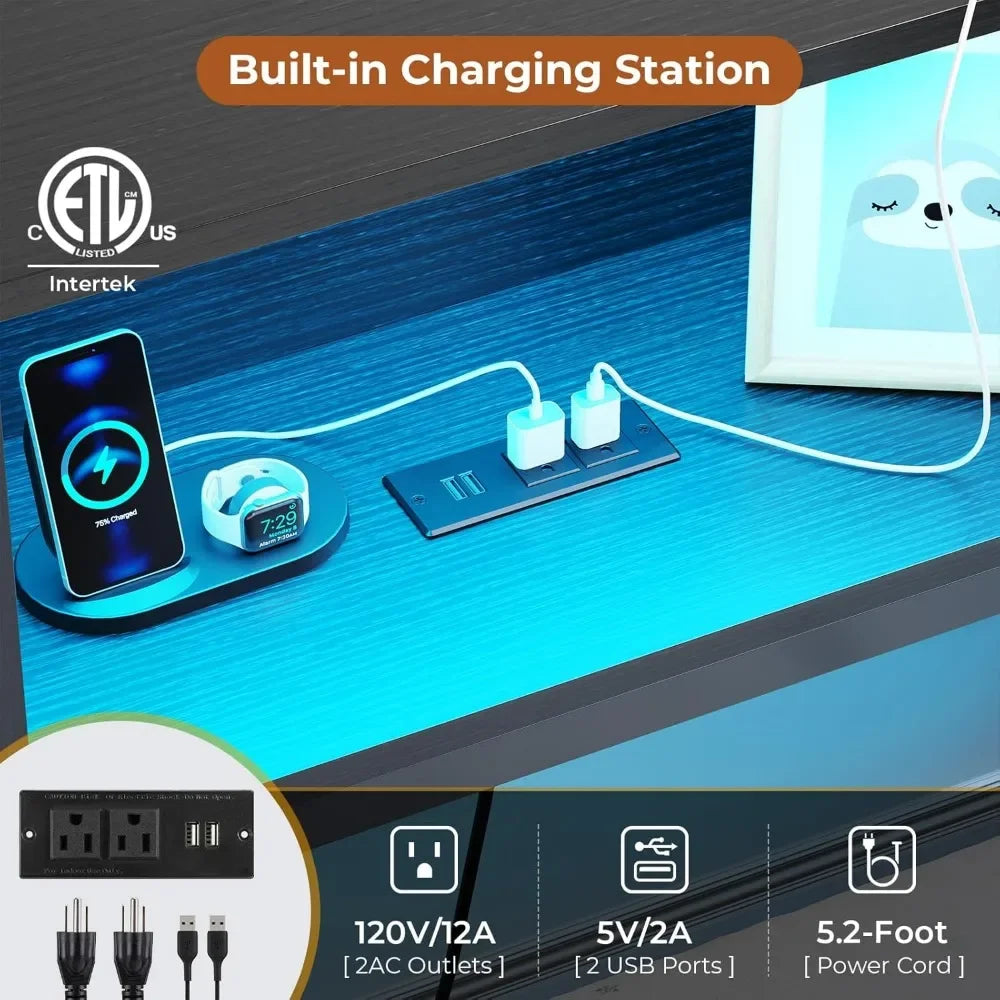 Special Feature: Charging Station Corner Design Lighted No Box Spring Need