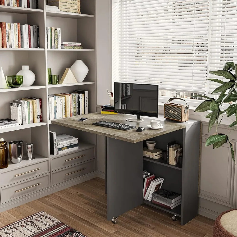 【Additional Storage Space】There are two storage shelves underneath the folding dinner table where you can put small, lighter weight items such as kitchen supplies, books and other office supplies or needlework crafts. When folded up, you will find it convenient to hide the compact essentials inside.