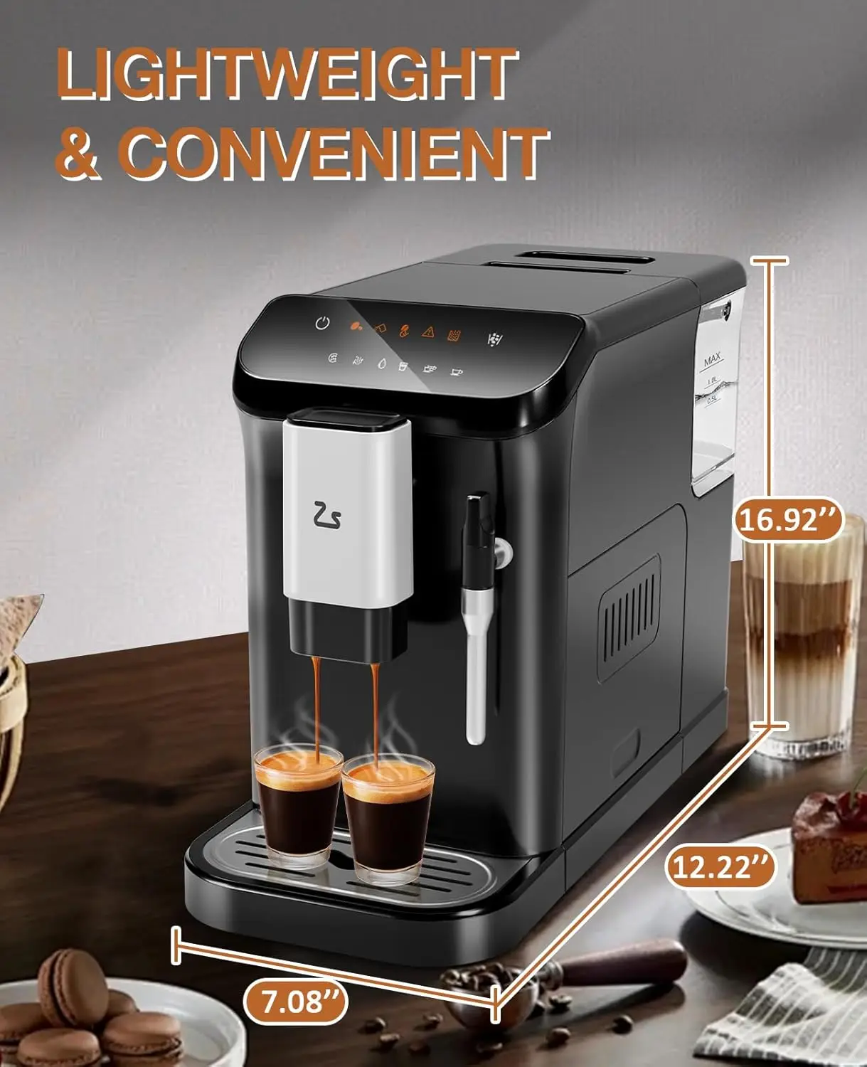 【Easy Cleaning & Maintenance】Removable water tank and drip tray allow quick cleaning. The self-cleaning feature keeps internal parts fresh and ready for daily use.