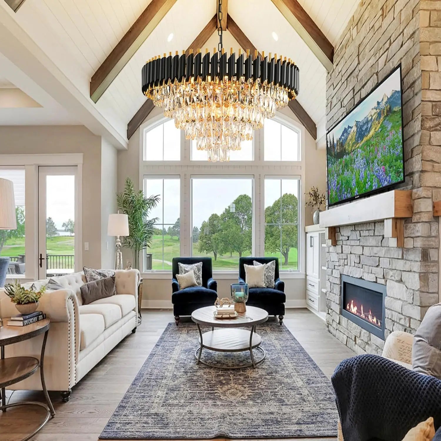 Gold Modern Crystal Chandelier - 6-Tier Round Crystal Chandelier Light Fixture, Black, Large, for Dining Room, Living Room, Bedr