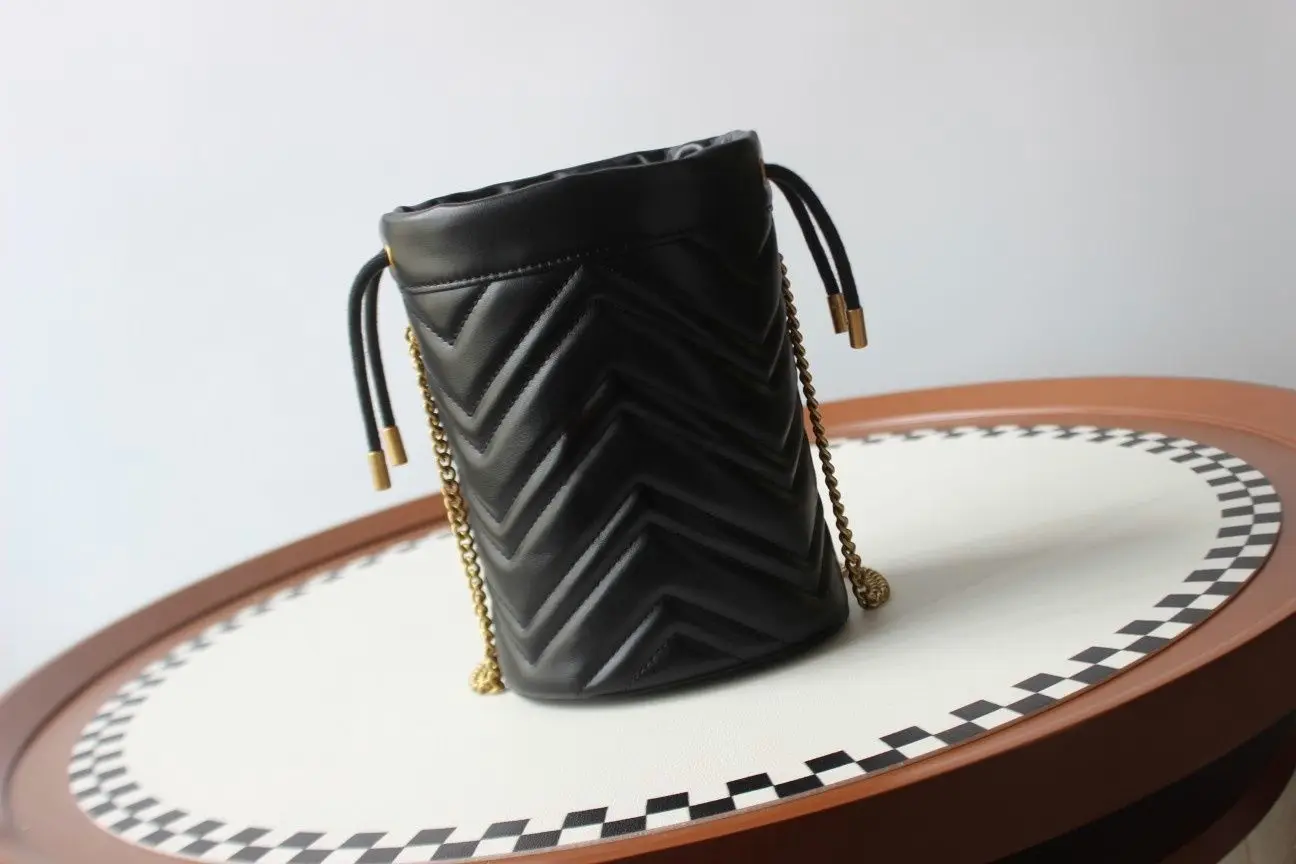 New stylish chain-strap top-grain cowhide mini exquisite bucket bag, shoulder bag/crossbody bag YB
