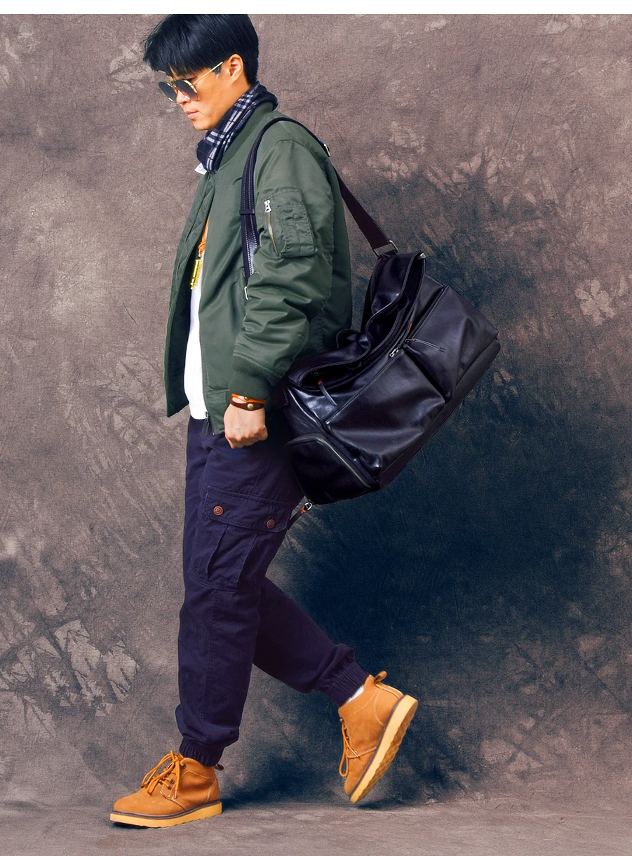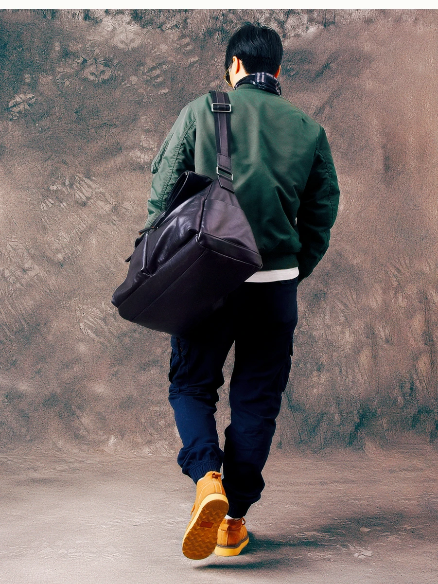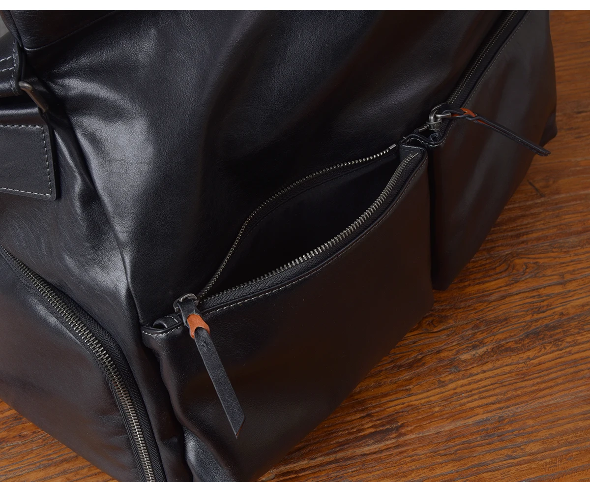 outdoor sports luxury genuine leather men's travel bag casual designer handmade soft cow leather black big luggage fitness bag
