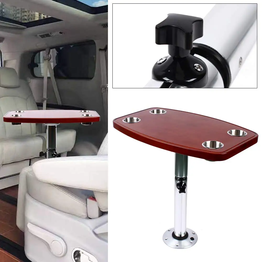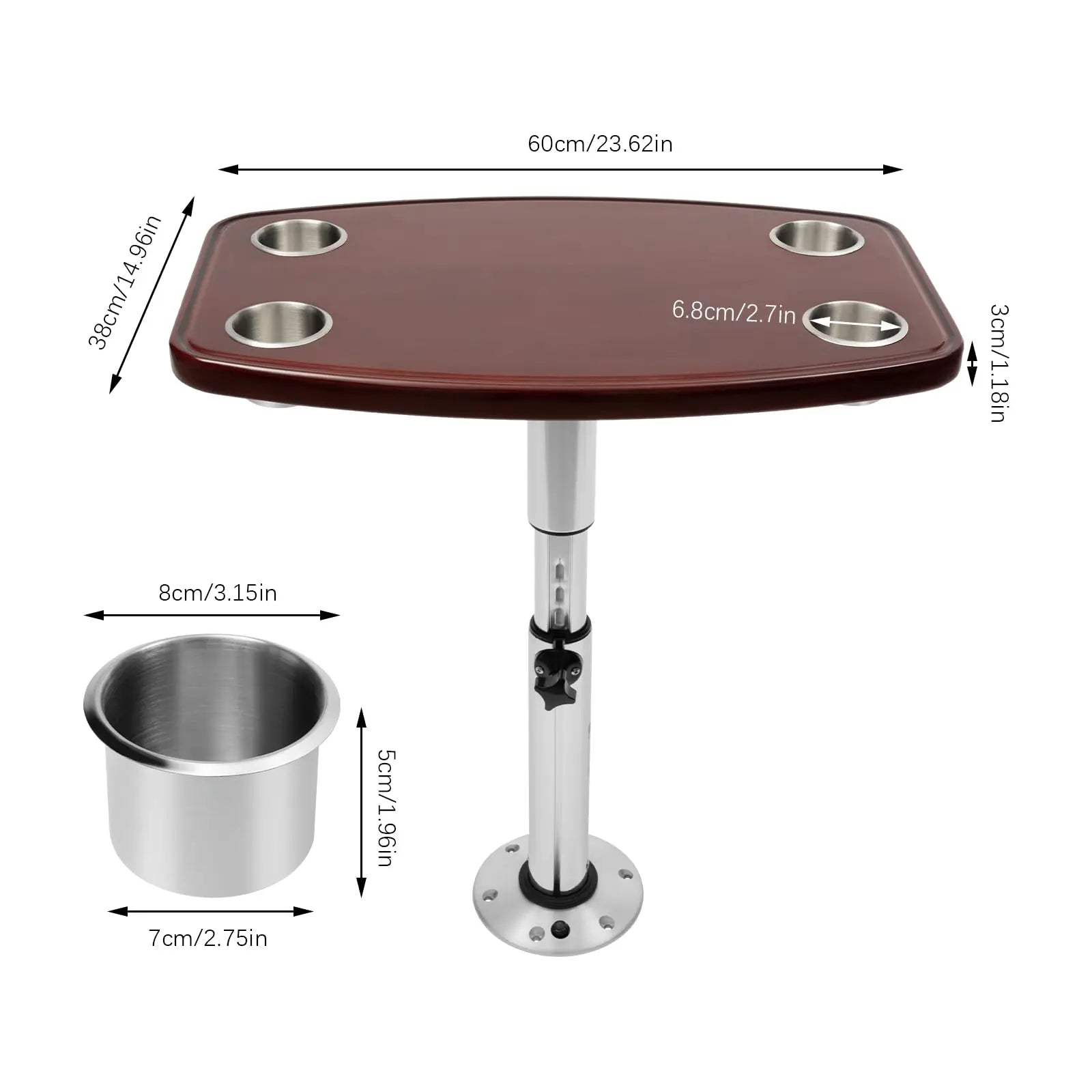 Removable RV Tables Varnished Oak Table Top 600 * 380mm, Adjustable Height RV Dinette Table Dining Table with 4 Cup Holders