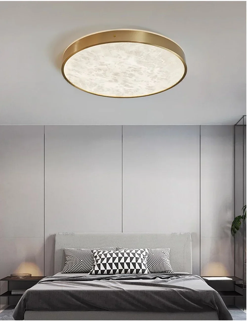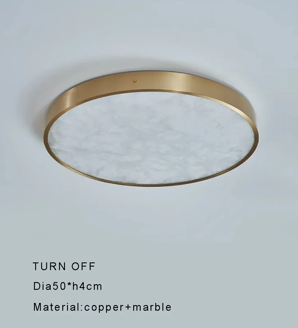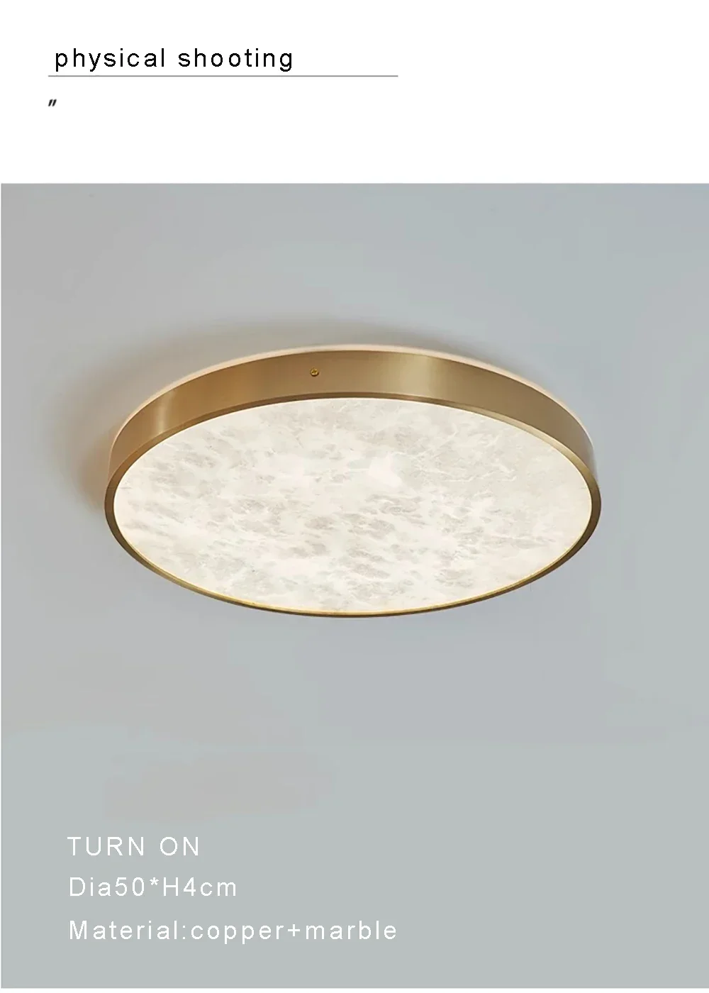 Simple Design Round Marble Stone Ceiling Lights Bedroom Light Living Room Hallway Book Room Elegant All Copper Light Fixture