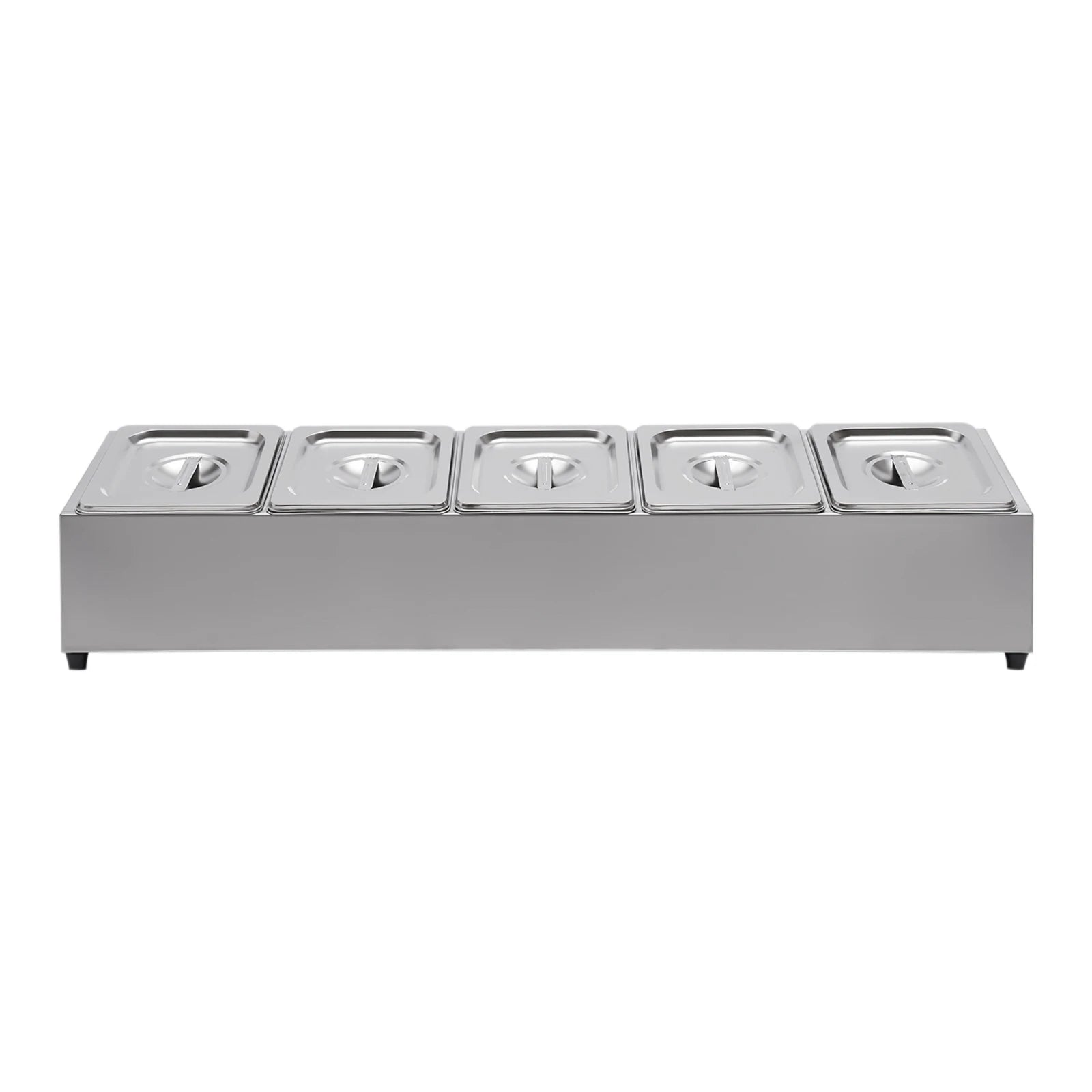Spice Rack Shelf Stainless Steel Organizer Stand W/ 5*1/6 Pans W/ Lids Countertop Inclined Holder for Sauce Fruits Kitchen Use
