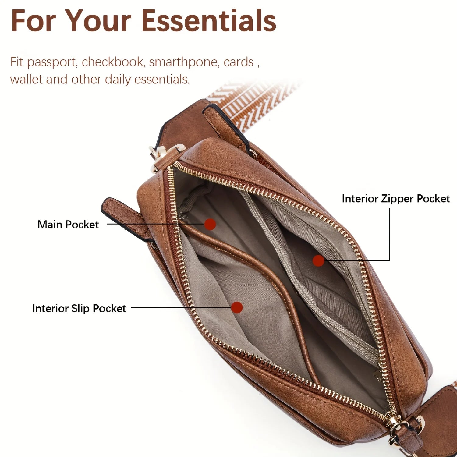 Stylish Crossbody Purse For Women - Retro Shoulder Bag With Wide Shoulder Strap and Triple Zip Cell Phone Handbag for Everyday U