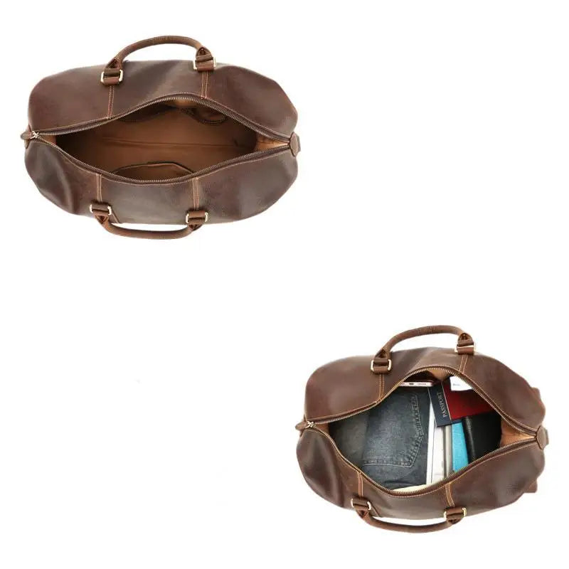 Vintage Crazy Horse Leather Travel Tote Bag for Men, High-end Genuine Leather Shoulder Bag